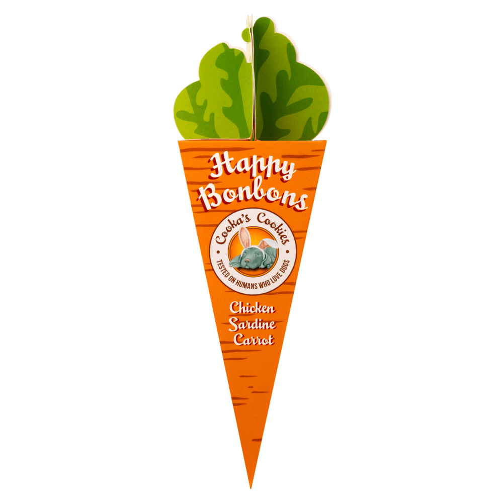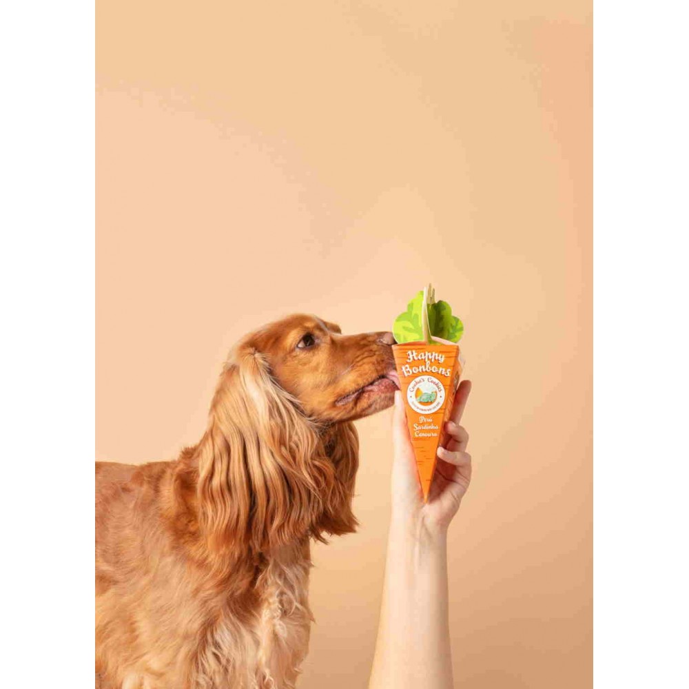Τα happy bonbons με γαλοπούλα, σαρδέλες και καρότο είναι μια απολαυστική, διασκεδαστική και υγιεινή λιχουδιά που μπορείτε να προσφέρετε στο σκυλάκο σας. Χάρη στο σχήμα του προσφέρει διαφορετικές υφές και γεύσεις.