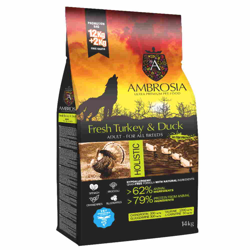 Πλήρης Oλιστική Tροφή για Eνήλικες Σκύλους Όλων των Φυλών, με Πάπια και Φρέσκια Γαλοπούλα, Χωρίς Σιτηρά. Πρόκειται για μια ελληνική συνταγή, που συνδυάζει την εύπεπτη πρωτεΐνη από φρέσκια γαλοπούλα με την υψηλή διατροφική αξία που συναντάται στο κρέας της πάπιας, ενώ τα λαχανικά και τα βότανα που περιέχει ενδυναμώνουν το ανοσοποιητικό σύστημα των τετράποδων φίλων μας.