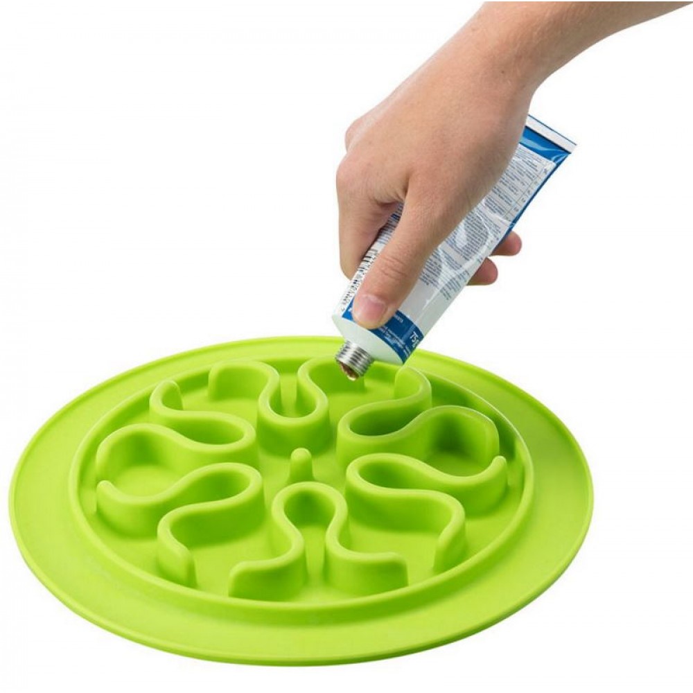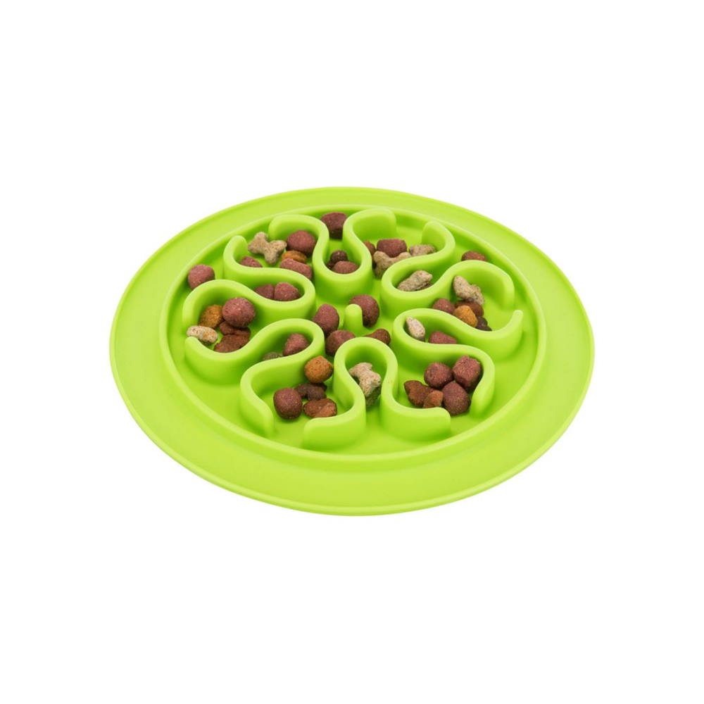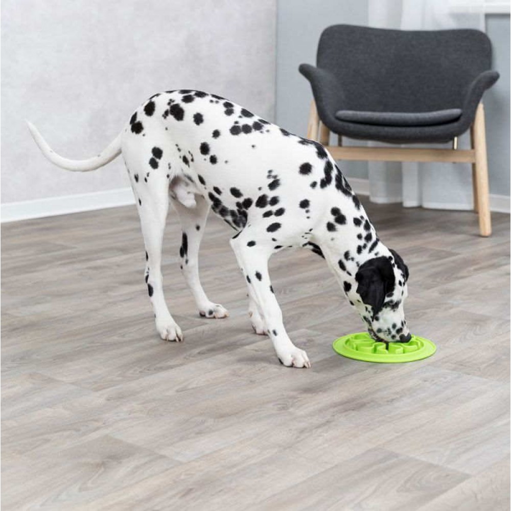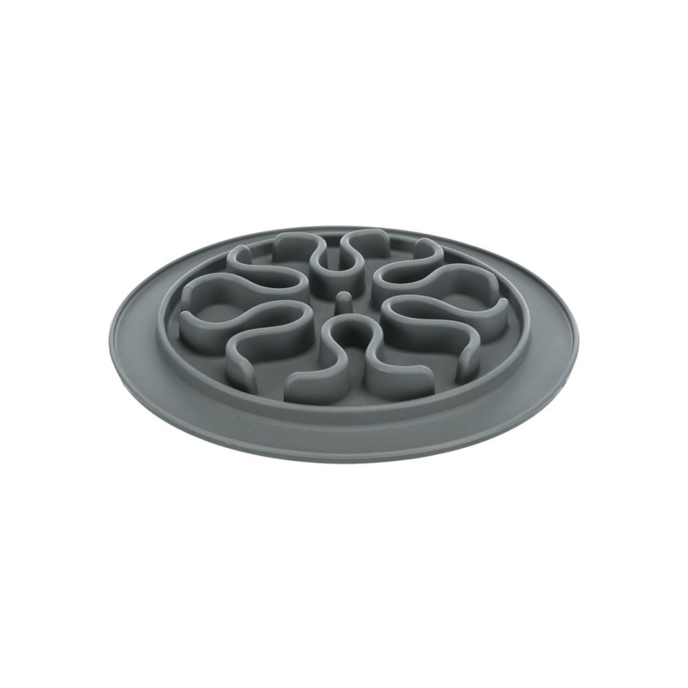 Αντιολισθητικό χαλάκι φαγητού που λειτουργεί και ως πιατάκι κατά της λαιμαργίας, από καουτσούκ, με ανάγλυφη επιφάνεια και υποδοχές για το φαγητό, κατάλληλο για σκυλάκια ανεξαρτήτου μεγέθους και ηλικίας. Το Slow Feeding Food Mat από την Trixie είναι ένα anti – anxiety και anti – boredom παιχνίδι απασχόλησης, το οποίο μπορεί κάλλιστα να χρησιμοποιηθεί και στην εκπαίδευση και ενδείκνυται για ζωάκια που αντιμετωπίζουν προβλήματα λαιμαργίας στο φαγητό. Ο έξυπνος σχεδιασμός του με τις αυλακώσεις και τους ανάγλυφους σχηματισμούς σε όλη του την επιφάνεια, σας επιτρέπει να τοποθετήσετε φαγητό είτε με τη μορφή κροκέτας είτε κονσέρβας είτε κάποιας λιχουδιάς υγρής μορφής όπως γιαούρτι ή φιστικοβούτυρο και πουρέ και να αφήσετε το ζωάκι σας να απασχοληθεί με τις ώρες, γλείφοντας και δαγκώνοντας με την καρδιά του μέχρι και το τελευταίο ίχνος τροφής από τις αυλακώσεις.