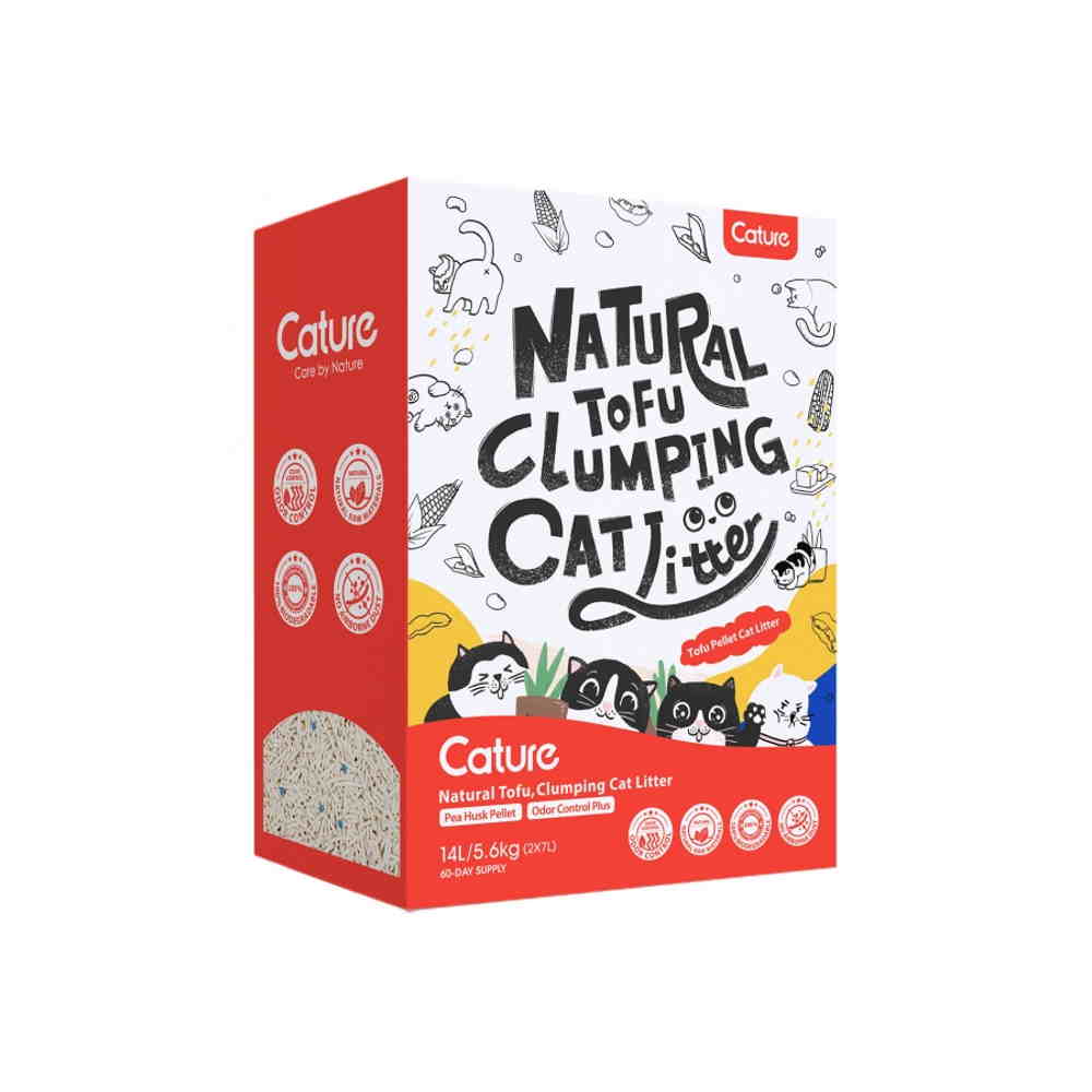 Το Cature Natural Tofu Clumping Cat Litter αποτελεί ένα φυσικό, οικολογικό υπόστρωμα, κατασκευασμένο από επεξεργασμένες ίνες αρακά και είναι κατάλληλο για ενήλικες και ανήλικες γατούλες. Με ενισχυμένη αντιβακτηριακή δράση και μαλακή υφή που δεν κολλάει στα πατουσάκια, αποτελεί ιδανική επιλογή για γατούλες με ευαισθησίες ή μικρά γατάκια που τώρα πρωτοσυνηθίζουν να χρησιμοποιούν την λεκάνη υγιεινής. Το προϊόν διαμορφώνεται σε κυλινδρικά pellets ειδικά σχεδιασμένα ώστε να σβωλιάζουν αμέσως και να καθαρίζονται εύκολα με οποιοδήποτε φτυαράκι. Οι φυτικές ίνες του αρακά διασφαλίζουν ότι η υγρασία και οι οσμές απορροφώνται και παγιδεύονται μέσα τους με φυσικό τρόπο. Έτσι τα ούρα δεν φτάνουν στον πάτο της αμμολεκάνης όπου λερώνουν δημιουργώντας εστίες μικροβίων. Πρόκειται για ένα εκ φύσεως ελαφρύ προϊόν, εύκολο στη μεταφορά και την χρήση, χωρίς χημικά, που απορροφά 4 φορές το βάρος του σε υγρασία, χωρίς να δημιουργεί σκόνη λερώνοντας το χώρο και ερεθίζοντας τη μύτη της γατούλας σας. Βιολογικό και πλήρως βιοδιασπώμενο, η σύνθεσή του δεν επιβαρύνει το περιβάλλον αφού η χρήση πλαστικής σακούλας αποτελεί πλέον παρελθόν. Απλώς καθαρίστε την τουαλέτα της γατούλας σας εύκολα και πετάξτε τους σβώλους στη λεκάνη της τουαλέτας σας !!!