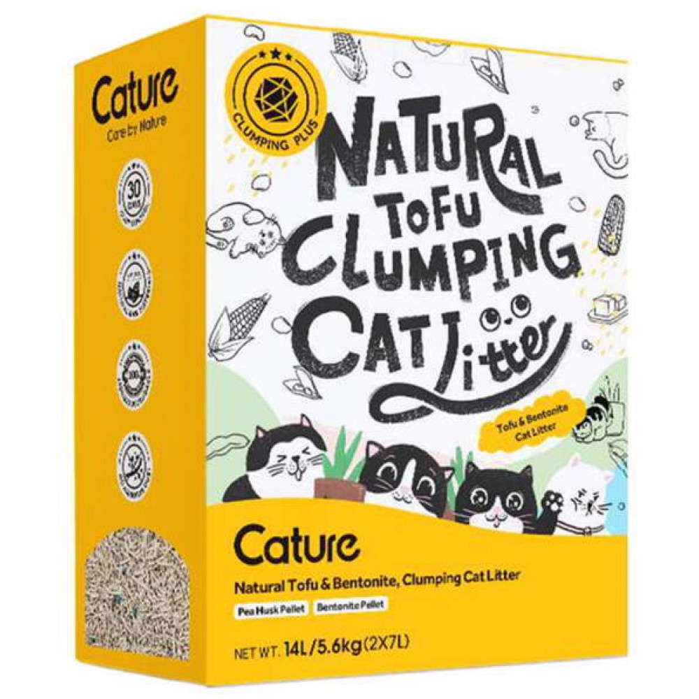 Το Cature Mix Tofu Bentonite Clumping Cat Litter αποτελεί ένα φυσικό, οικολογικό υπόστρωμα, κατασκευασμένο από επεξεργασμένες ίνες αρακά σε ανάμειξη με μπετονίτη και είναι κατάλληλο για ενήλικες και ανήλικες γατούλες. Με ενισχυμένη αντιβακτηριακή δράση και μαλακή υφή που δεν κολλάει στα πατουσάκια, αποτελεί ιδανική επιλογή για γατούλες με ευαισθησίες ή μικρά γατάκια που τώρα πρωτοσυνηθίζουν να χρησιμοποιούν την λεκάνη υγιεινής. Το προϊόν αποτελείται από μπετονίτη σε συνδυασμό με κυλινδρικά pellets tofu ειδικά σχεδιασμένα ώστε να σβωλιάζουν αμέσως και να καθαρίζονται εύκολα με οποιοδήποτε φτυαράκι. Οι φυτικές ίνες του αρακά διασφαλίζουν ότι η υγρασία και οι οσμές απορροφώνται και παγιδεύονται μέσα τους με φυσικό τρόπο και ο μπετονίτης ενισχύει συγκολλητικά τον σβώλο. Έτσι τα ούρα δεν φτάνουν στον πάτο της αμμολεκάνης όπου λερώνουν δημιουργώντας εστίες μικροβίων.