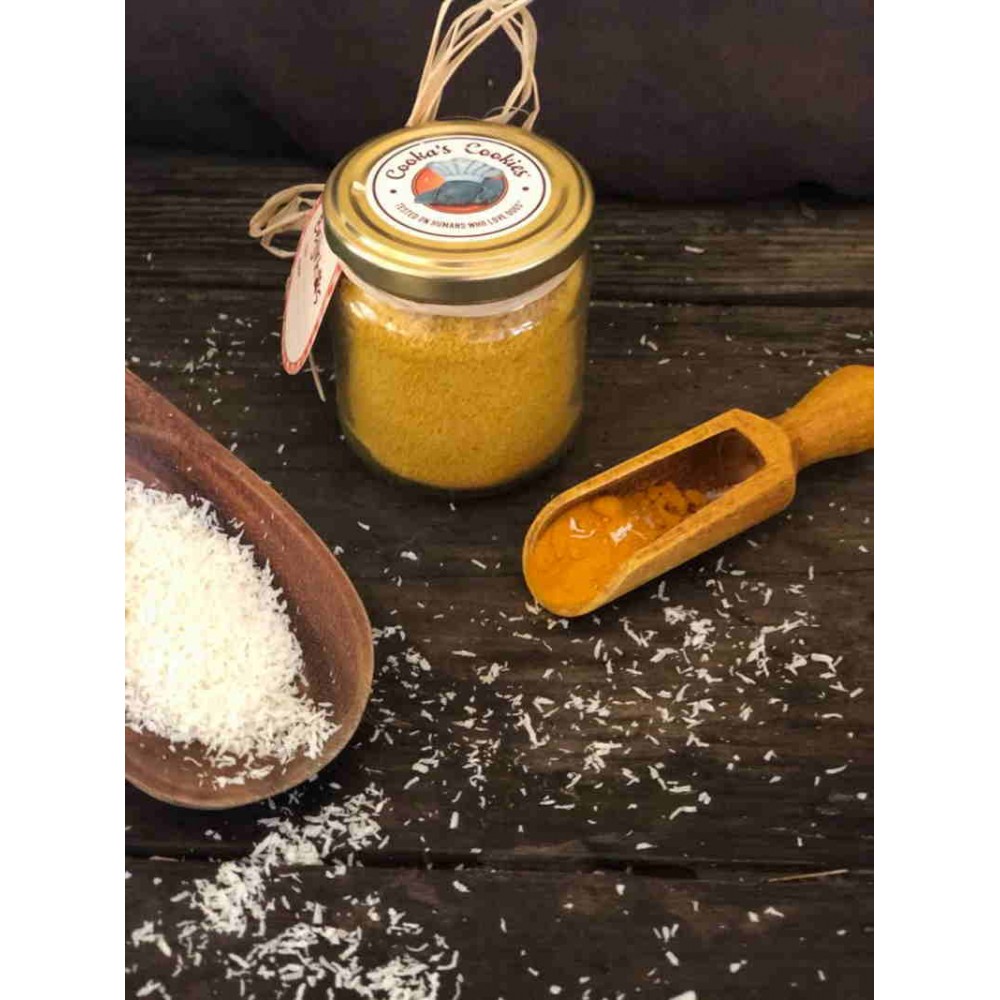 Εξαιρετικό συμπλήρωμα γεύματος για σκύλους και γάτες από καρύδα, κουρκουμά και μαύρο πιπέρι χωρίς γλουτένη και δημητριακά. Ισχυρό αντιοξειδωτικό και φυσικό αντιφλεγμονώδες το οποίο μπορεί να βοηθήσει στην πρόληψη του καρκίνου, ενώ παράλληλα προστατεύει το συκώτι από τις τοξίνες. Ιδανικό για τις αρθρώσεις του μικρού σας φίλου.