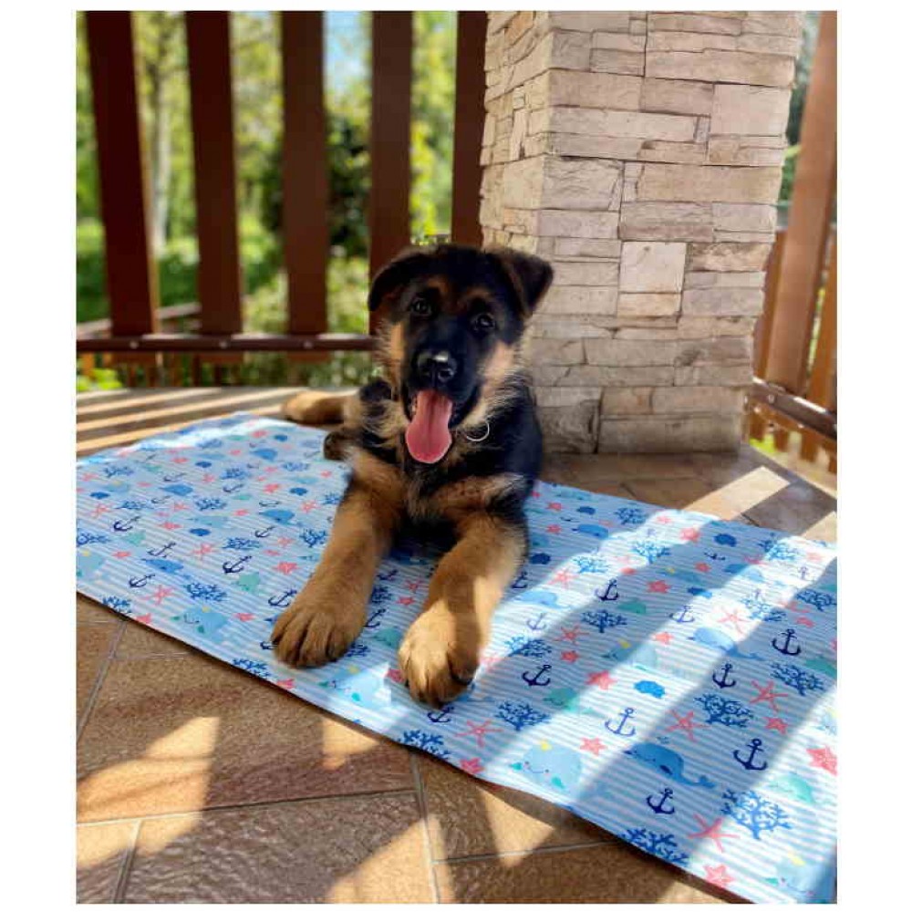 Δροσιστικό χαλάκι για τις ζεστές μέρες του καλοκαιριού, κατάλληλο για σκυλάκια και γατούλες. Το χαλάκι Breeze Whales Cooling Mat από την Croci κατασκευάζεται από πολυεστέρα και PVCανθεκτικό στις γρατζουνιές και αδιάβροχο, ιδανικό για ζωάκια με προβλήματα ακράτειας. Εσωτερικά περιέχει στρώση τζελ100% ασφαλής για ζώα και ανθρώπους, η οποία δρα σαν ρυθμιστής της θερμοκρασίας του σώματος του αγαπημένου σας τετράποδου. Μέσω της έμμεσης επαφής ανάμεσα στο σώμα του ζώου και της στρώσης τζελ απάγεται θερμότητα από το σώμα του ζώου, δροσίζοντας και ανακουφίζοντάς το από την υπερβολική ζέστη γύρω του. Η όλη διαδικασία γίνεται σταδιακά χωρίς πρόσθετα βοηθήματα όπως ηλεκτρικό ρεύμα ή νερό. Το χαλάκι καθαρίζεται εύκολα με υγρό πανί, ενώ δεν συγκρατεί τρίχες και ακαθαρσίες. Είναι αναδιπλούμενο για εύκολη μεταφορά και αποθήκευση και προσφέρει άνεση, ειδικά πάνω σε σκληρές επιφάνειες χάρις στην ελαφρώς αφράτη του γέμιση. Μπορεί να χρησιμοποιηθεί έξω και μέσα στο σπίτι, στο αυτοκίνητο και τη βόλτα. Μια ασφαλής και αποτελεσματική λύση που ο μικρός μας φίλος είναι σίγουρο ότι θα λατρέψει !!!