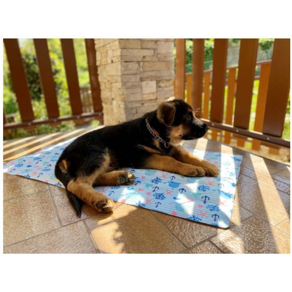 • Δροσιστικό χαλάκι από πολυεστέρα και PVC με εσωτερική στρώση θερμορυθμιστικού τζελ, κατάλληλο για σκυλάκια και γατούλες.