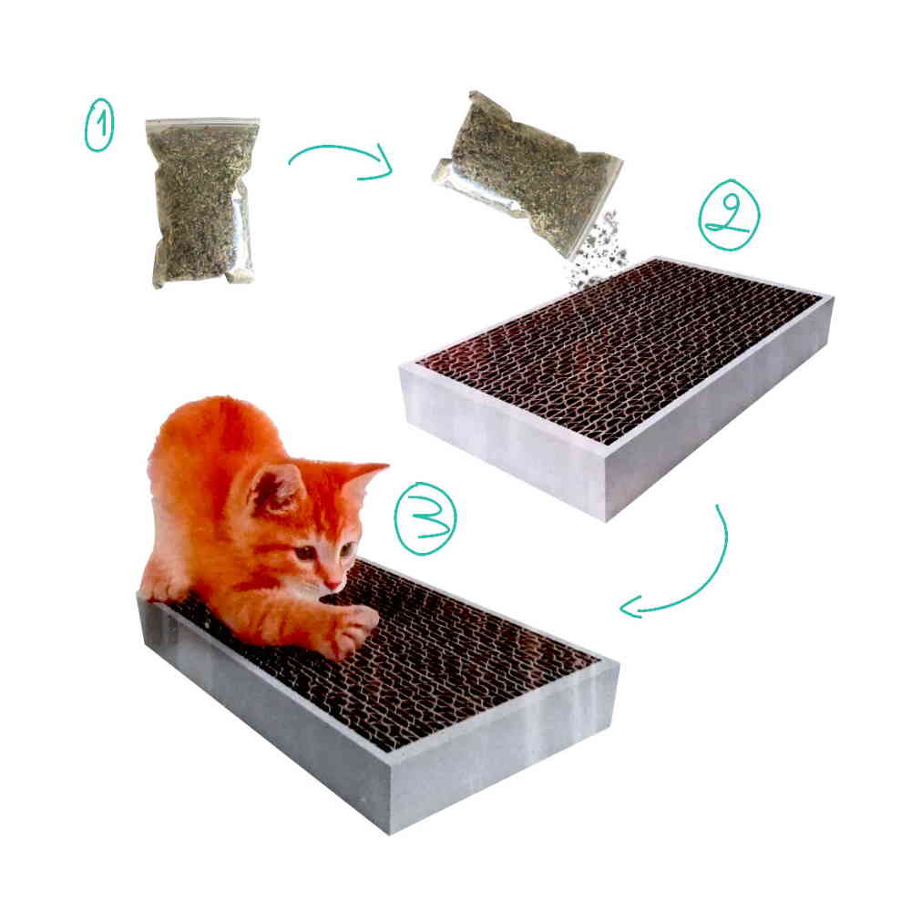 - Ορθογωνικό ονυχοδρόμιο από κυψελωτό χαρτόνι, μαζί με σακουλάκι αρωματικό catnip, κατάλληλο για όλες τις γατούλες, ανεξαρτήτου μεγέθους και ηλικίας.