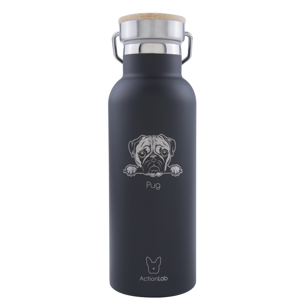 Eco Life Bamboo Thermos Bottle Μαύρο Pug 500ml