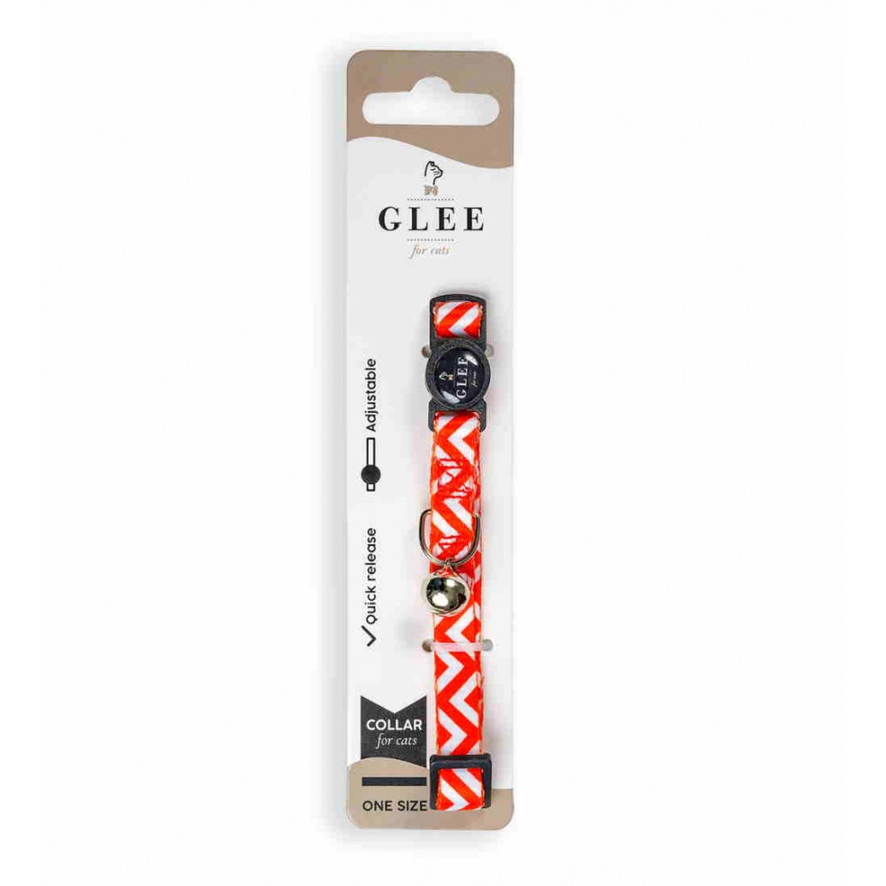 Glee Περιλαίμιο Γάτας Ιμάντας με Πλαστικό Κούμπωμα Ασφαλείας & Κουδουνάκι Red Zig Zag (10mmx30cm)
