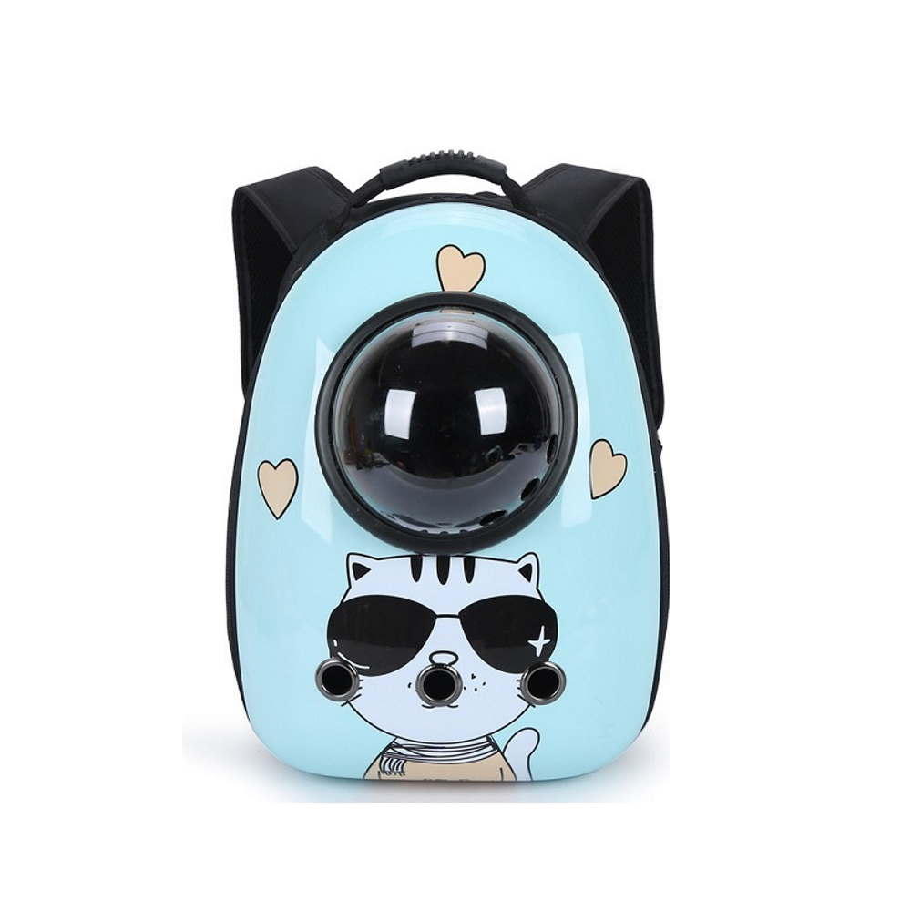 Μοντέρνα τσάντα μεταφοράς πλάτης για μικρόσωμα σκυλάκια και γάτες, με σχέδιο ''sunglasses cat'', διαστάσεων 30x42x26 εκατοστά. Παρέχει εύκολη εφαρμογή στον ώμο σας για να μεταφέρετε άνετα και με ασφάλεια τον μικρό σας φίλο, καθώς σας αισθάνεται δίπλα του. Εξαιρετικά ανθεκτική, με ειδικούς αεραγωγούς και διαφανή κάψουλα, ώστε να απολαμβάνει την βόλτα του παρατηρώντας. Αποτελεί ιδανικό αξεσουάρ για εσάς όταν θέλετε να έχετε τα χέρια σας ελεύθερα, ενώ το σχήμα της τσάντας εμποδίζει την οποιαδήποτε ‘’απόδρασή’’ και κρατάει ασφαλές το ζωάκι σας.