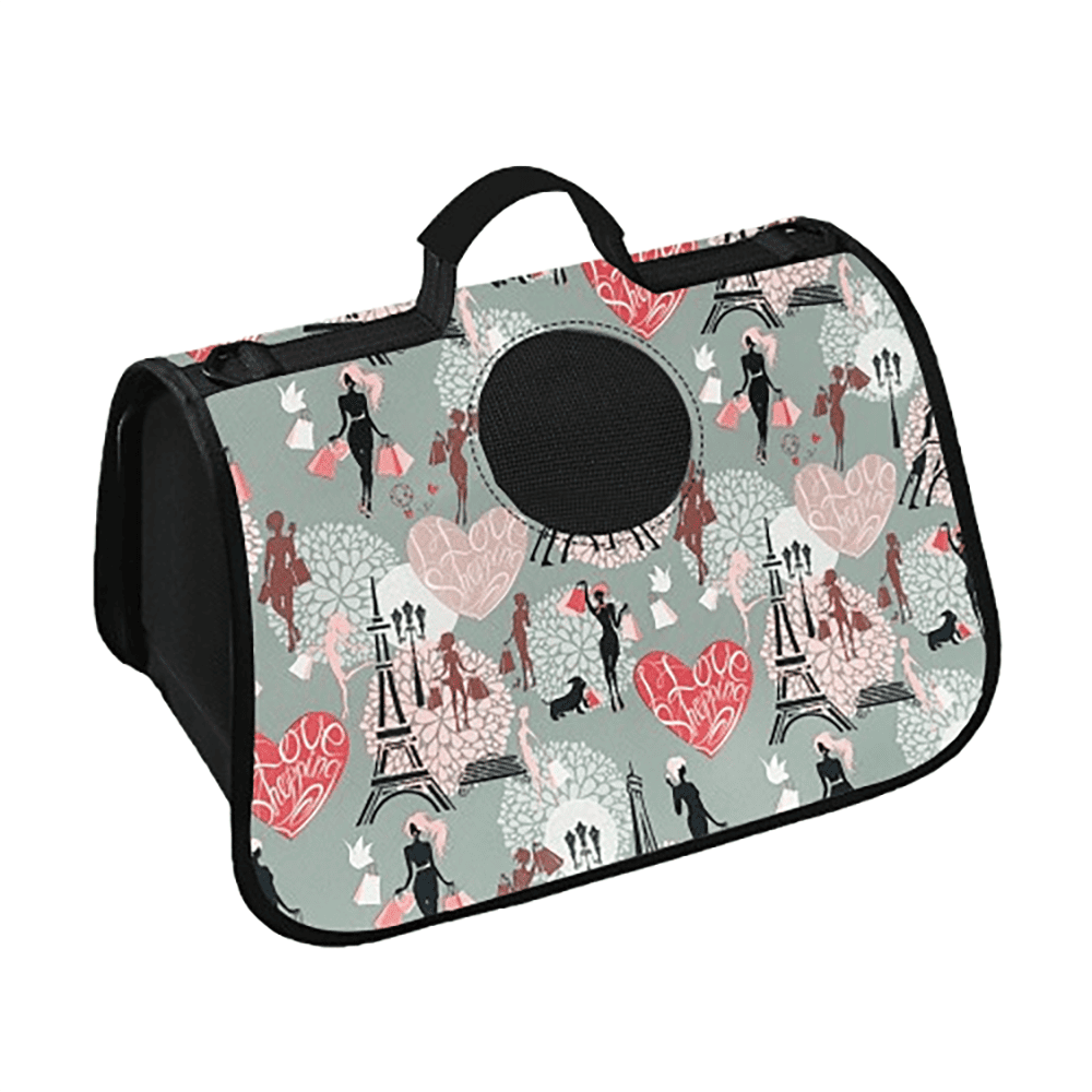 Μοντέρνα τσάντα μεταφοράς ώμου – χειρός, κατάλληλη για μικρόσωμα σκυλάκια και γάτες, με σχέδιο ‘’Hearts’’ και διαστάσεις 34x29x27 εκατοστά. Ο ιμάντας ώμου παρέχει εύκολη εφαρμογή στον ώμο σας για να μεταφέρετε άνετα και με ασφάλεια τον μικρό σας φίλο, καθώς σας αισθάνεται δίπλα του. Εξαιρετικά ανθεκτική, με ειδικούς αεραγωγούς για άριστο εξαερισμό και μικρό παραθυράκι, ώστε να απολαμβάνει την βόλτα του παρατηρώντας. Αποτελεί ιδανικό αξεσουάρ για εσάς όταν θέλετε να έχετε τα χέρια σας ελεύθερα, ενώ το σχήμα της τσάντας εμποδίζει την οποιαδήποτε ‘’απόδρασή’’ και κρατάει ασφαλές το ζωάκι σας.