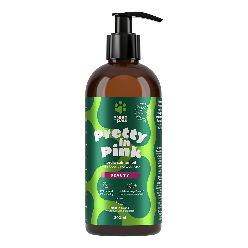 Το Pretty in Pink είναι ένα 100% φυσικό διατροφικό συμπλήρωμα σε μορφή ελαίου, ειδικά σχεδιασμένο για σκύλους και γάτες που χρειάζονται ενίσχυση στην υγεία του δέρματος και του τριχώματος.