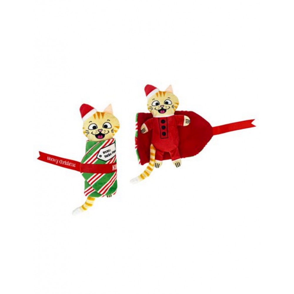 Λούτρινο χριστουγεννιάτικο παιχνίδι απασχόλησης 2 σε 1, με ήχο και catnip, κατάλληλο για όλες τις γατούλες. Γατάκι τυλιγμένο σαν burrito, όπου η γάτα σας προσπαθεί να το ξετυλίξει και έτσι περνάνε πολλές ώρες παιχνιδιού. Η μακριά ουρά και η κορδέλα είναι ιδανικές για να τραβήξουν το ενδιαφέρον της μικρής σας φίλης. Είναι το ιδανικό παιχνίδι για να διώξει την πλήξη και να ξυπνήσει το φυσικό ένστικτο του κυνηγού της μικρής μας φίλης. Ταυτόχρονα το catnip που περιέχει διεγείρει τις αισθήσεις της και ενισχύει τη διάθεσή της για διασκέδαση μέχρι τελικής πτώσεως. Παράγει πολλούς και διαφορετικούς ήχους που θυμίζουν χαρτί που τσαλακώνεται, προκαλώντας τη γατούλα σε ατελείωτο παιχνίδι.