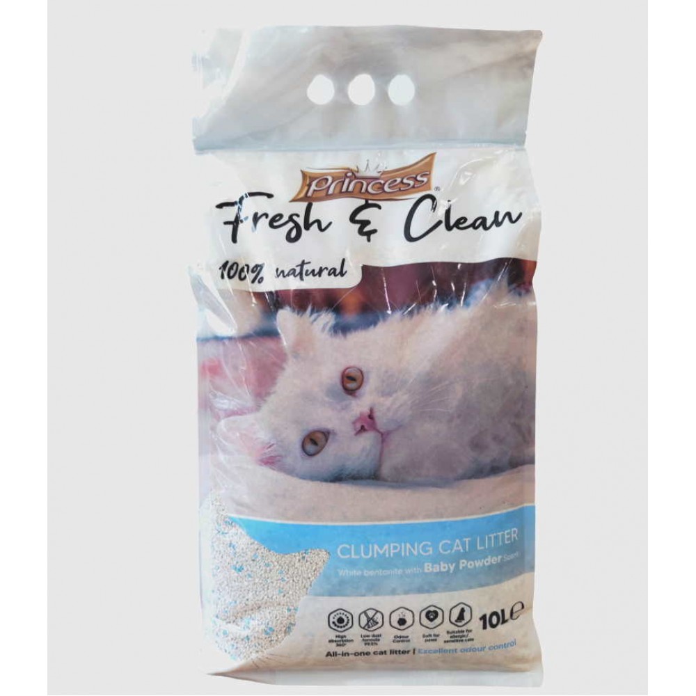 Συγκολλητική Άμμος Υγιεινής, Μεγάλης Διάρκειας και Εξαιρετικής Απόδοσης από ΦυσικόΛευκό Μπετονίτη, κατάλληλη για Όλες τις Γατούλες, με Άρωμα Πούδρας. Οι άμμοι της Princess είναι ειδικά σχεδιασμένες για να διαμορφώνουν ένα περιβάλλον άνετο και καθαρό για τη γατούλα σας. Ο μπετονίτης υψηλής ποιότητας από λευκά πετρώματα, με ισχυρή δράση κατά των οσμών και άριστη ικανότητα απορρόφησης, παγιδεύει στους συμπαγείς κόκκους του τα ούρα και την αμμωνία, εξαλείφοντας  τις δυσάρεστες οσμές, ενώ η ισχυρή συγκολλητική του δράση βοηθά στη δημιουργία συμπαγών σβόλων, οι οποίοι απομακρύνονται με ευκολία κάνοντας το καθάρισμα παιχνίδι. Με ειδική φόρμουλα για 99,5% λιγότερη σκόνη και απορρίμματα, τα πατουσάκια και το σπίτι παραμένουν καθαράενώ μια αίσθηση φρεσκάδας με άρωμα πούδρας απελευθερώνεται κάθε φορά που η γατούλα σας χρησιμοποιεί την τουαλέτα της.