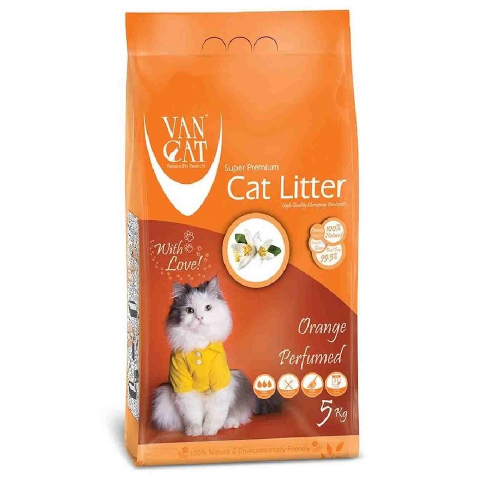 Συγκολλητική Αντιαλλεργική Άμμος Υγιεινής, Μεγάλης Διάρκειας και Εξαιρετικής Απόδοσης από 100% Φυσικό, Λευκό Μπετονίτη, κατάλληλη για Όλες τις Γατούλες, με Άρωμα Πούδρας. Οι άμμοι της Van Cat είναι ειδικά σχεδιασμένες για να διαμορφώνουν ένα περιβάλλον άνετο και καθαρό για τη γατούλα σας. Ο μπετονίτης υψηλής ποιότητας από λευκά πετρώματα, με ισχυρή δράση κατά των οσμών και άριστη ικανότητα απορρόφησης, παγιδεύει στους συμπαγείς μεσαίους κόκκους του, τα ούρα και την αμμωνία, εξαλείφοντας τις δυσάρεστες οσμές, ενώ η ισχυρή συγκολλητική του δράση βοηθά στη δημιουργία συμπαγών σβόλων, οι οποίοι απομακρύνονται με ευκολία κάνοντας το καθάρισμα παιχνίδι. Διαθέτει 280%- 300% ικανότητα απορρόφησης υγρών και βγάζει 99,5% λιγότερη σκόνη και απορρίμματα. Τα πατουσάκια και το σπίτι παραμένουν καθαρά, ενώ μια αίσθηση φρεσκάδας με άρωμα πορτοκάλι απελευθερώνεται κάθε φορά που η γατούλα σας χρησιμοποιεί την τουαλέτα της. Διαρκεί 5 φορές περισσότερο από άλλες άμμους.