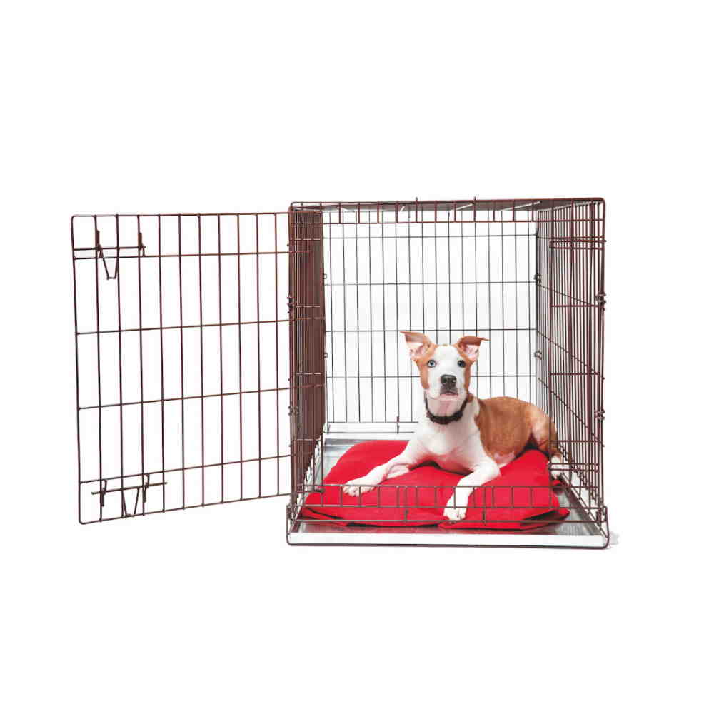 - Μεταλλικό αναδιπλούμενο κλουβί περιορισμού – μεταφοράς, κατάλληλο για μεσαίου μεγέθους σκυλάκια.