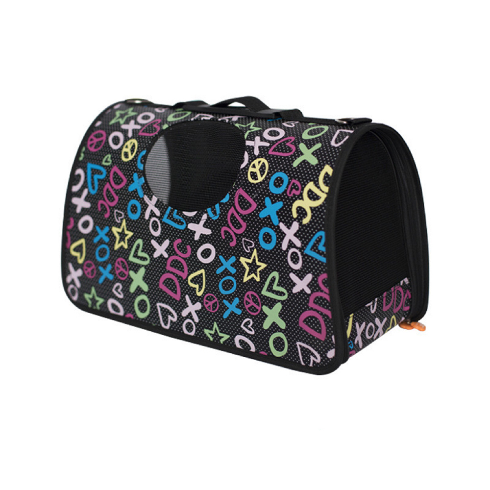 Μοντέρνα τσάντα μεταφοράς ώμου – χειρός, κατάλληλη για μικρόσωμα σκυλάκια και γάτες, με σχέδιο "Alphabet" και διαστάσεις 34x29x27 εκατοστά. Ο ιμάντας ώμου παρέχει εύκολη εφαρμογή στον ώμο σας για να μεταφέρετε άνετα και με ασφάλεια τον μικρό σας φίλο, καθώς σας αισθάνεται δίπλα του. Εξαιρετικά ανθεκτική, με ειδικούς αεραγωγούς για άριστο εξαερισμό και μικρό παραθυράκι, ώστε να απολαμβάνει την βόλτα του παρατηρώντας. Αποτελεί ιδανικό αξεσουάρ για εσάς όταν θέλετε να έχετε τα χέρια σας ελεύθερα, ενώ το σχήμα της τσάντας εμποδίζει την οποιαδήποτε ‘’απόδρασή’’ και κρατάει ασφαλές το ζωάκι σας.
