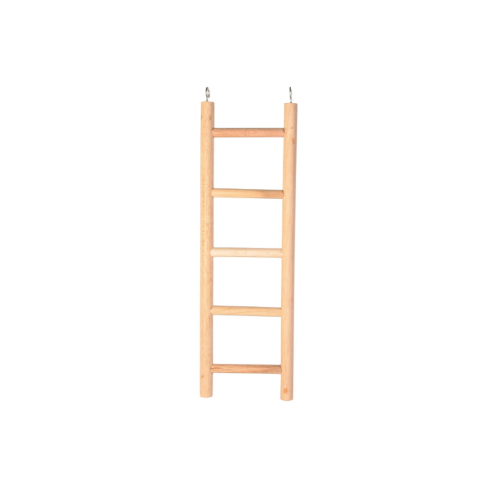 Ξύλινη Σκάλα με 5 Σκαλοπάτια και 2 Μεταλλικά Άγκιστρα στην Κορυφή για Σταθερή Τοποθέτηση, ιδανική για Παπαγάλους και Παπαγαλάκια (Parakeets & Cockatiels). Κατασκευάζεται από προσεχτικά επιλεγμένο φυσικό ξύλο, χωρίς ρετσίνα, με μη τοξικές κόλλες. Έχει μήκος 45cm, εφαρμόζει άψογα στο κλουβάκι των μικρών μας φίλων και προσφέρει διασκέδαση, άσκηση και διέγερση για τα πόδια, το ράμφος και κυρίως το μυαλό τους.