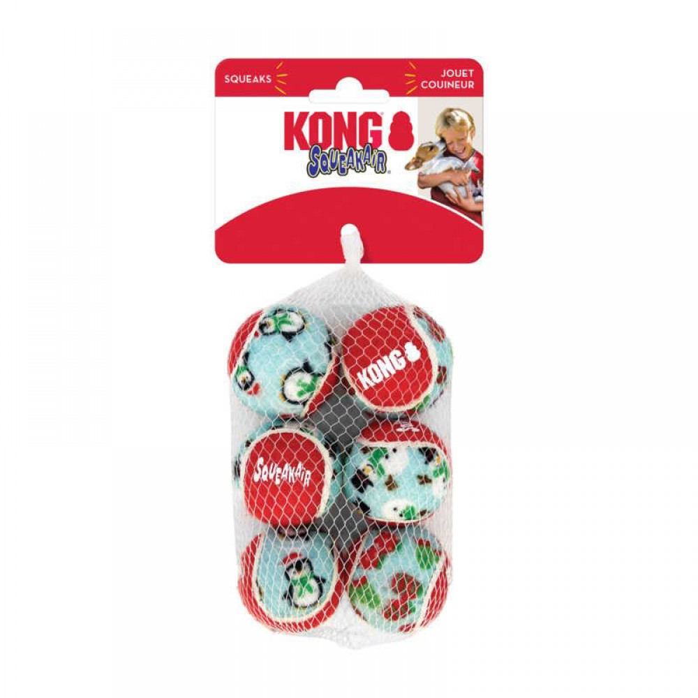 Χριστουγεννιάτικο παιχνίδι μάσησης και ανάκτησης με ήχο από την Kong, κατάλληλο για σκυλάκια όλων των φυλών. Διαθέτουν ενισχυμένα τοιχώματα που αντιστέκονται καλύτερα στη φθορά, ενώ η απρόβλεπτη αναπήδησή τους ξετρελαίνει τους μικρούς μας φίλους, κρατώντας το ενδιαφέρον τους αμείωτο για ώρες. Τα μπαλάκια εξωτερικά διαθέτουν επένδυση από υψηλής ποιότητας, ανθεκτική, μη τοξική τσόχα, ειδικά επεξεργασμένη ώστε να μην φθείρει τα δόντια και τα ούλα του σκύλου.