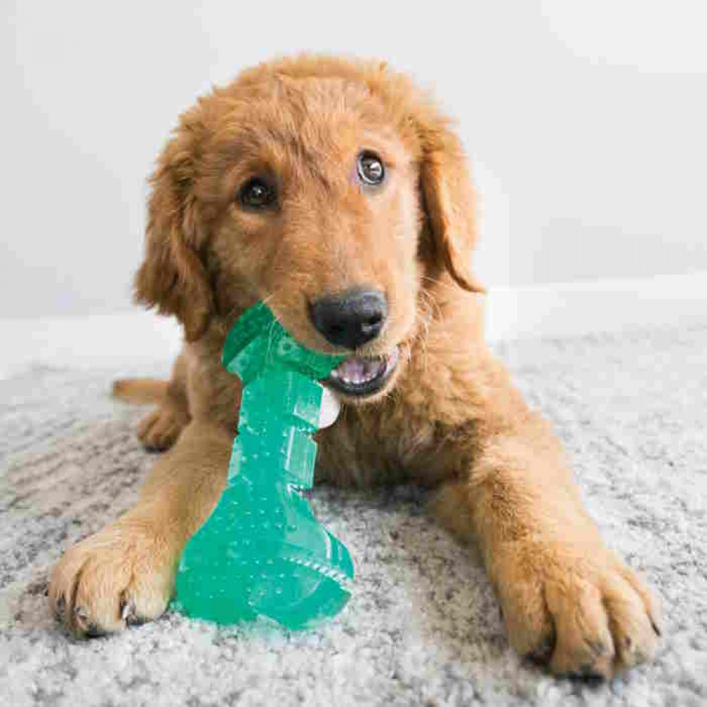 - Οδοντικό παιχνίδι μάσησης και ανάκτησης με αυλακώσεις και ανάγλυφες εξοχές, κατάλληλο για σκυλάκια 7 – 16Kg.