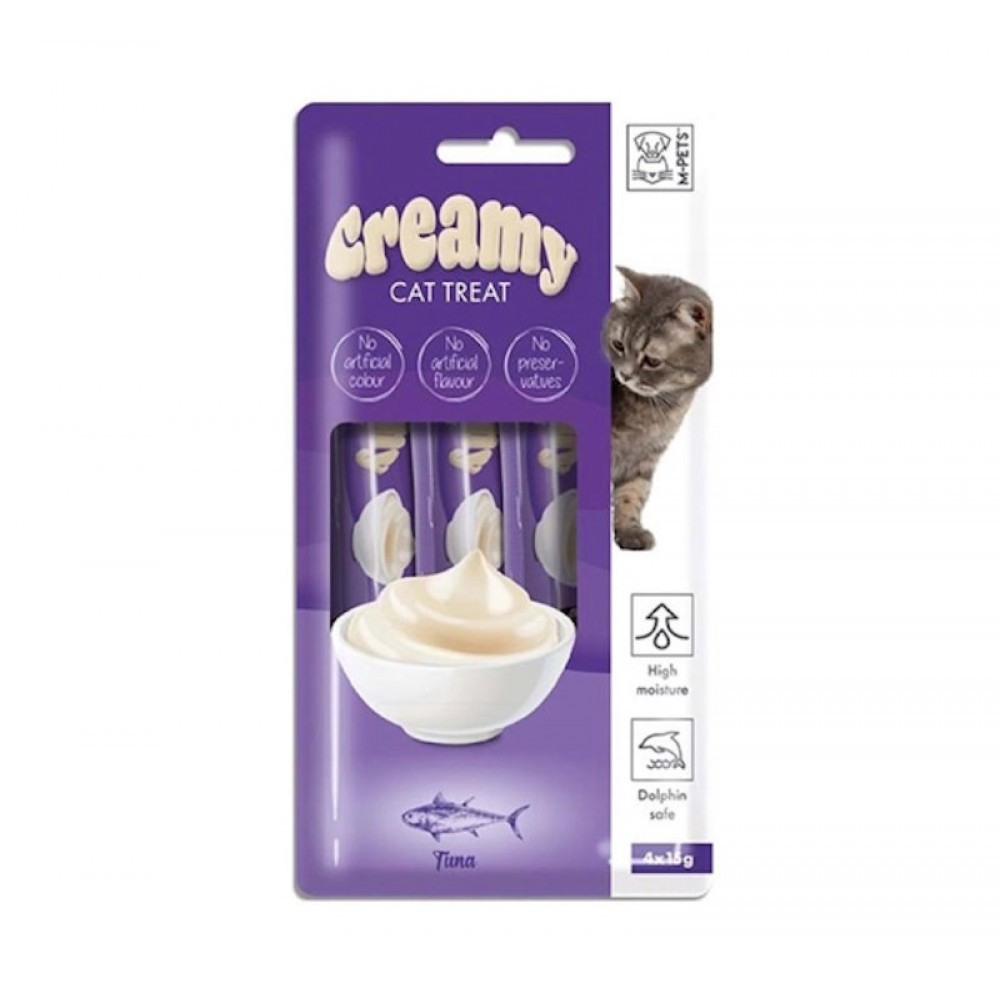Γευστική λιχουδιά σε μορφή κρέμας με γεύση τόνο. Κατάλληλο για ανήλικες, ενήλικες και ηλικιωμένες γατούλες. Αποτελείται από φυσικά συστατικά και δεν περιέχει σιτηρά, συντηρητικά ή τεχνητά χρώματα. Έχει υψηλή περιεκτικότητα σε υγρασία μιας και τη χρειάζονται οι γατούλες και χαμηλή περιεκτικότητα σε λιπαρά. Μπορείτε να την προσφέρετε ως λιχουδιά, ως συμπλήρωμα στην καθημερινή της διατροφή ή ακομα μπορείτε να την προσθεσετε στην ξηρά τροφή της, για επιπλέον υγρασία και γεύση. Αποτελεί ιδανική επιλογή για τα γατάκια που δυσκολεύονται να καταπιούν χάπι, καθώς μπορείται να το ανακατέψετε με την κρεμούλα. Η συσκευασία περιέχει 4 σωληνάρια, τα οποία μετά το άνοιγμα διατηρούνται στο ψυγείο.