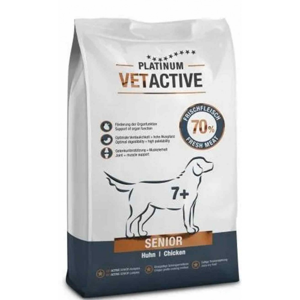 Όσο μεγαλώνει ένα σκυλάκι, τόσο πιο δύσκολο είναι για το σώμα να διατηρήσει τις φυσιολογικές διεργασίες. Αυτό επηρεάζει ολόκληρο τον μεταβολισμό καθώς και την πέψη, την οικοδόμηση των μυών και την καύση λίπους. Ως εκ τούτου, ιδιαίτερα τα ηλικιωμένα ζώα χρειάζονται επαρκείς πρωτεΐνες υψηλής ποιότητας που δεν επιβαρύνουν τον οργανισμό αλλά εξουδετερώνουν τη διαδικασία γήρανσης. Η platinum vetactive senior περιέχει 70% φρέσκο κοτόπουλο παρέχοντας έτσι στους ηλικιωμένους μικρούς μας φίλους, την υψηλότερη ποιότητα πρωτεΐνης. Οι πολύτιμες πρωτεϊνικές αλυσίδες και τα αμινοξέα δεν καταστρέφονται από την ειδική διαδικασία αργού μαγειρέματος και έχουν υψηλή βιολογική αξία, η οποία είναι ιδιαίτερα σημαντική για τους ηλικιωμένους σκύλους. Με τη φυσική, υγιεινή της σύνθεση και την ευκολία με την οποία μπορεί να χωνευθεί, η πλήρης μαγειρευτή (FSG) ξηρή τροφή platinum, εξασφαλίζει την υγιή και σθεναρή ανάπτυξη του σκύλου. Απαλλαγμένη από ανεπιθύμητα πρόσθετα που καταπονούν τον οργανισμό. Περιέχει μόνο υψηλής ποιότητας συστατικά, τα οποία είναι κατάλληλα ακόμα και για ανθρώπινη κατανάλωση. Περιέχει τουλάχιστον 70% φρέσκο κοτόπουλο σε ολόκληρα κομμάτια. Μαγειρεύεται στους δικούς τους ζωμούς κρέατος και ξηραίνεται με ήπια μέθοδο. Με 18% υπολειμματική υγρασία, η platinum είναι η ζουμερή ξηρή τροφή. Με τη μυρωδιά - γεύση κρέατος ο σκύλος σας θα τη λατρέψει. Λόγω του μαγειρέματος σε χυμούς κρέατος, είναι ιδιαίτερα θρεπτική, απολαυστική και γευστική, ενώ παράλληλα και εξαιρετικά εύπεπτη, χωρίς να πρήζεται στο στομάχι του μικρού σας φίλου.