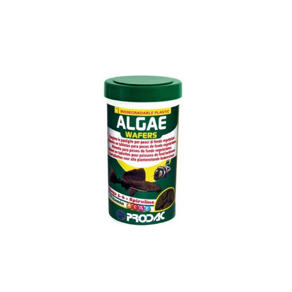 Σύνθετη, φυτική τροφή σε μορφή βυθιζόμενων δισκίων, κατάλληλη για φυτοφάγα ψάρια που τρέφονται από το βυθό. Τα δισκία Algae Wafers από τη Prodac αποτελούν έναν συνδυασμό από θρεπτικά συστατικά υψηλής ποιότητας, ειδικά σχεδιασμένο ώστε να καλύπτει τις διατροφικές ανάγκες αυτών των ψαριών. Η περιεκτικότητά τους σε 10% ξύλο, είναι απαραίτητη σε πολλές ποικιλίες ψαριών όπως τα Peckoltias ή τα Panaques. Στη φύση αυτά τα είδη τρέφονται κυρίως με κορμούς και ρίζες, φθείροντας την επιφάνειά τους και φιλτράροντας τα θρεπτικά συστατικά τους.