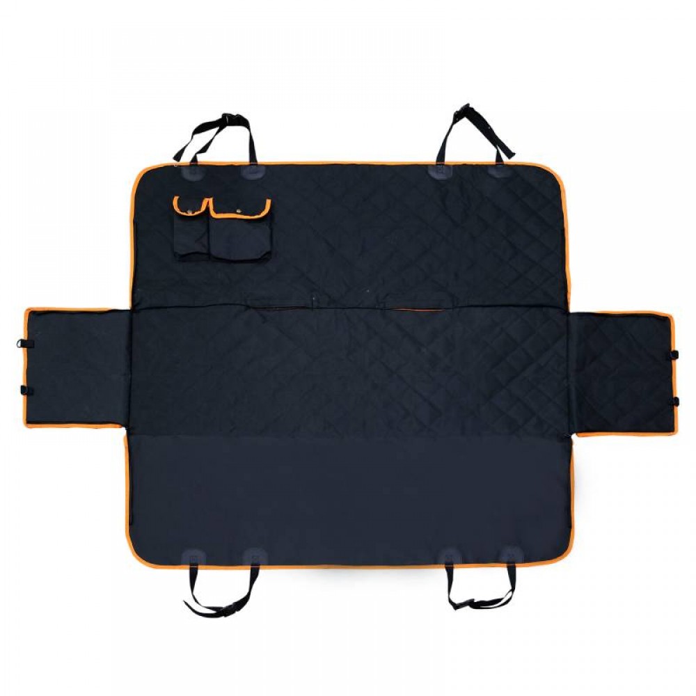 Προστατευτικό Κάλυμμα Καθισμάτων Αυτοκινήτου από 600D Oxford Fabric, διαστάσεων 135x145 cm, ιδανικό για μεγάλα πίσω καθίσματα. Το Car Seat Cover εξασφαλίζει μέγιστη προστασία από τρίχες, υγρασία και βρωμιές, ενώ προσφέρει άνεση στο κατοικίδιό σας κατά τη μεταφορά. Με αντιολισθητική επένδυση, αδιάβροχη βάση, έξι σημεία ασφάλειας και κλείσιμο με φερμουάρ δεξιά και αριστερά, προσφέρει σταθερότητα και ευκολία στη χρήση. Διαθέτει δύο πρακτικές θήκες αποθήκευσης για αξεσουάρ του κατοικιδίου.