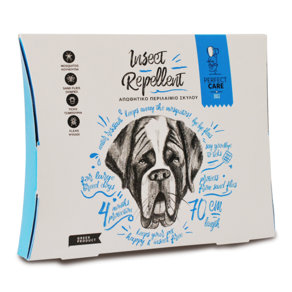 Απωθητικό Περιλαίμιο για Εξωπαράσιτα, κατάλληλο για Σκύλους και Κουτάβια Μεγαλόσωμων Φυλών. Το περιλαίμιο αυτό αποτελεί έναν εύκολο και φυσικό τρόπο για να προστατεύσετε το σκυλάκι σας από τα ενοχλητικά εξωπαράσιτα, όπως είναι τα κουνούπια, οι σκνίπες, τα τσιμπούρια και οι ψύλλοι. Οι δυο δραστικές ουσίες που περιέχει (Μargoza 3% και Citriodora oil 7%) προσφέρουν άμεση δράση και μεγάλη διάρκεια προστασίας, έως και 4 μήνες, ενώ τα αιθέρια έλαιά του παρέχουν φυσική προστασία χωρίς την χρήση εντομοκτόνων που είναι επιβλαβής για το περιβάλλον και το κατοικίδιό σας. Η προστασία του δέρματος από ερεθισμούς και το ευχάριστο άρωμά του το κάνει ιδανική επιλογή για εσάς και το σκυλάκι σας !!!