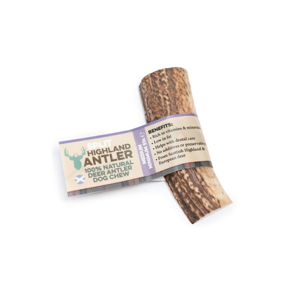 Split, μασώμενα κέρατα ελαφιού, ανοιγμένα με εκτεθειμένο το μεδούλι για μεγαλύτερη ευκολία στη μάσηση, που συλλέγονται με φυσικό τρόπο από κοπάδια ορεινών περιοχών της Σκωτίας, τώρα διαθέσιμα και  ως λιχουδιά μακράς διαρκείας, κατάλληλη για σκυλάκια φυλών μεσαίου μεγέθους. Πρόκειται για ένα φυσικό προϊόν, cruelty free, αφού τα κέρατα μαζεύονται από το έδαφος, ενώ πρώτα έχουν αποβληθεί με φυσικό τρόπο από το άγριο ελάφι, διαδικασία που λαμβάνει χώρα σε συγκεκριμένη εποχήμια φορά το χρόνο. Τα Nova Dog Highland Antler Chews περισυλλέγονται και επεξεργάζονται φυσικά - χωρίς χημικά, καθαρίζονται και κόβονται σε διάφορα μεγέθη και βάρη και ταυτόχρονα λειαίνονται όλα τα αιχμηρά τους σημεία, ώστε να είναι ασφαλή προς κατανάλωση από τους μικρούς μας φίλους. Είναι άοσμαχωρίς πρόσθεταχωρίς συντηρητικά και δεν λερώνουν !!!