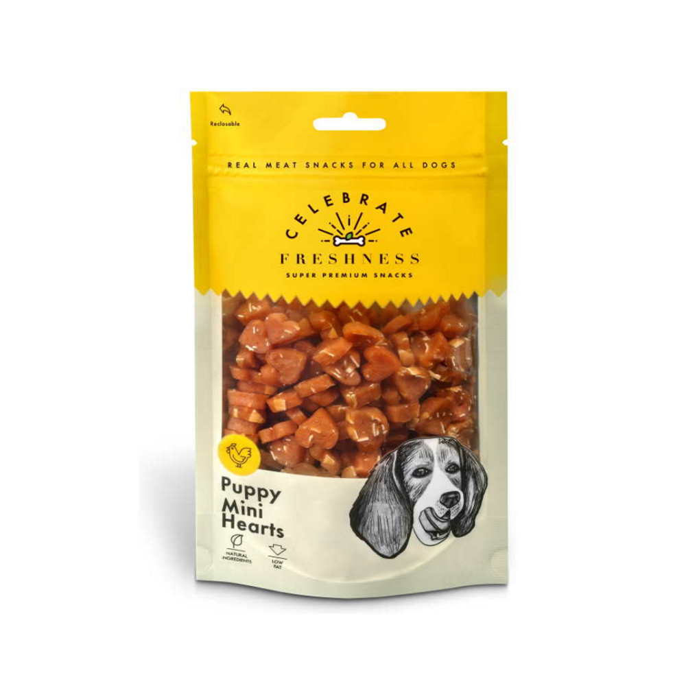 Λαχταριστές Λιχουδιές σε Μικρές Μπουκίτσες με Σχήμα Καρδιάς, κατάλληλες για Όλα τα Κουταβάκια από Κοτόπουλο και Ψάρι. Οι λιχουδιές της Celebrate Freshness αποτελούν συμπληρώματα διατροφής που παρασκευάζονται με προσεγμένες, φυσικές πρώτες ύλες, έχοντας ως πρώτο συστατικό το κρέας. Είναι υποαλλεργικές, πλούσιες σε πρωτεΐνη και χαμηλές σε λιπαρά, με χαμηλά ή και χωρίς σιτηρά και γλουτένη, ενώ η μεγάλη γκάμα σε γεύσεις, υφές και αρώματα είναι σίγουρο ότι θα ικανοποιήσει ακόμα και τους πιο απαιτητικούς τετράποδους φίλους μας. Για απαιτητικά κατοικίδια που διαλέγουν πάντα το καλύτερο, οι λιχουδιές της Celebrate Freshness είναι η σίγουρη επιλογή !!!