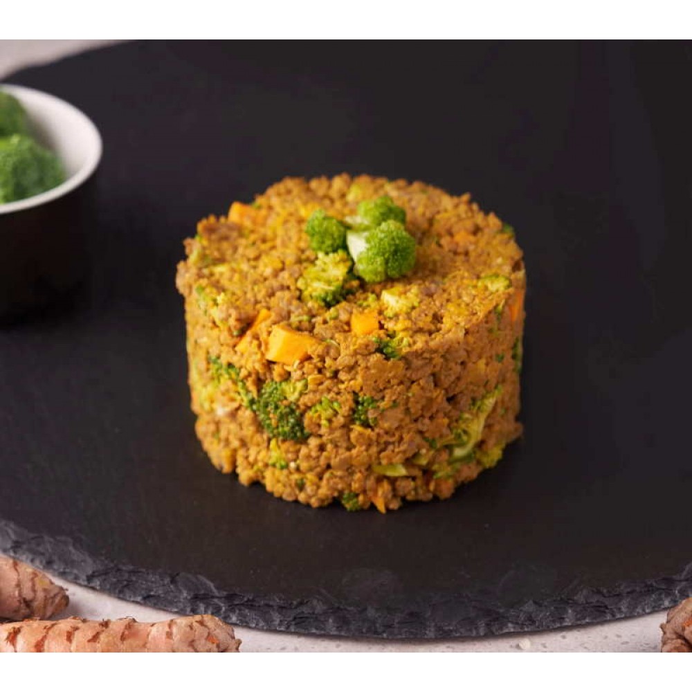 Συστατικά: Μοσχαρίσιο Κρέας (Κιμάς, καρδιά, συκώτι), Βρώμη 10%, Καρότο, Μπρόκολο, Γλυκοπατάτες, Μοσχαρίσιο Συκώτι, Μουρουνέλαιο, Ελληνικό Βιολογικό Λινέλαιο, Κουρκουμάς, Μίγμα Ισορρόπησης Θρεπτικών Συστατικών 0,8%