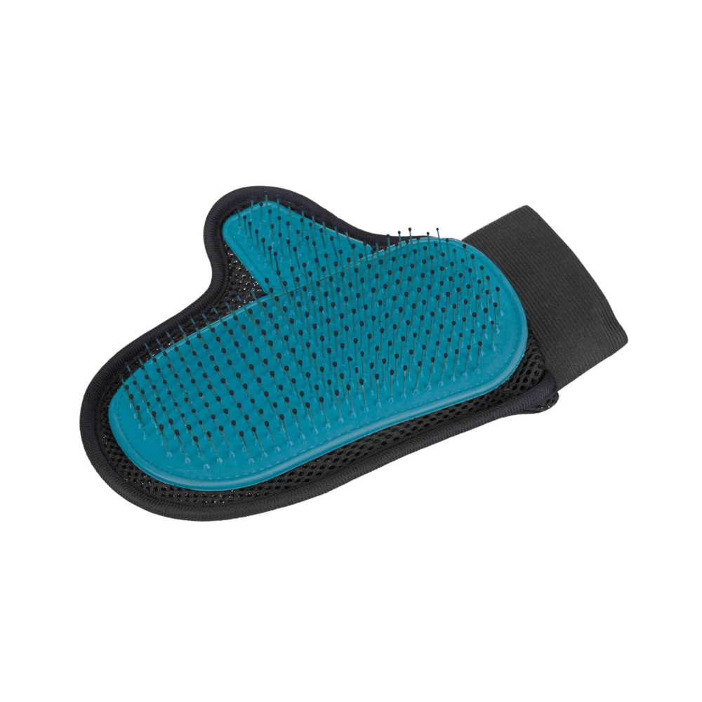 Βούρτσα σε μορφή γαντιού με μεταλλικές τρίχες με κεφαλή, για καλλωπισμό του τριχώματος επιφάνειας και βάσης, από την Trixie. Κατάλληλη για σκυλάκια και γατούλες, ανεξαρτήτου μεγέθους και ηλικίας. Το Fur Care Glove της Trixie αποτελεί ιδανική επιλογή για τη φροντίδα του τριχώματος του κατοικίδιού σας και μπορεί να χρησιμοποιηθεί συνδυαστικά με άλλες βούρτσες ή χτένες ώστε να προσφέρει πιο ολοκληρωμένο καλλωπισμό. Κατασκευασμένο από αεροδιαπερατό, διχτυωτό υλικό με velcro δέσιμο για ασφαλή εφαρμογή, χτενίζει απαλά, με τις συρμάτινες τρίχες να διεισδύουν στο τρίχωμα, φτάνοντας μέχρι τη βάση, δεσμεύοντας τις νεκρές τρίχες και απομακρύνοντάς τες. Η κεφαλή στην άκρη κάθε συρμάτινης τρίχας εξασφαλίζει ανώδυνο βούρτσισμα για το ζώο, το τρίχωμα ξεμπλέκεται ελαφρώς, ενώ διεγείρεται η ροή του αίματος καθ’ όλη τη διάρκεια του βουρτσίσματος. Ταυτόχρονα η χρήση του γαντιού βοηθά στην εξοικείωση του ζώου με την διαδικασία του καλλωπισμού, καθώς το αντιλαμβάνεται ως προέκταση του χεριού σας και το βούρτσισμα ως χάδι.