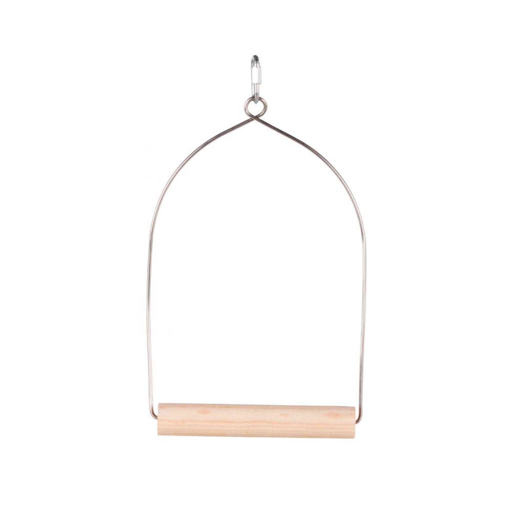 Ξύλινη Κούνια σε Σχήμα Αψίδας με Μεταλλικό Γάντζο για Ανάρτηση από την Οροφή του Κλουβιού, ιδανική για Παπαγαλάκια και Παπαγάλους (Budgies & Cockatiels). Κατασκευάζεται από προσεχτικά επιλεγμένο φυσικό ξύλο, έχει διαστάσεις 15x27 εκατοστά και προσαρμόζεται άψογα στο κλουβάκι των μικρών μας φίλων, προσφέροντάς τους μια διασκεδαστική ενασχόληση που δεν τους αφήνει να πλήττουν.