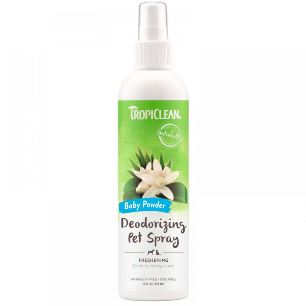 Κολόνια μεγάλης διάρκειας που διασπά τις άσχημες μυρωδιές στην πηγή τους, δροσίζοντας αποτελεσματικά το κατοικίδιο και το σπίτι σας. Το γλυκό και απαλό άρωμα πούδρας αφήνει το ζωάκι σας να μυρίζει φρεσκάδα ??και να είναι έτοιμο για αγκαλιές!