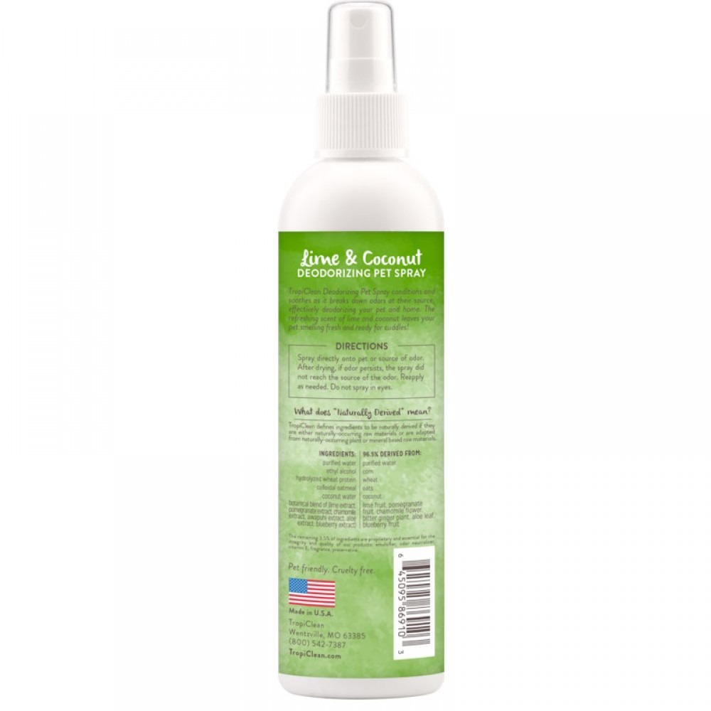 Κολόνια μεγάλης διάρκειας που διασπά τις άσχημες μυρωδιές στην πηγή τους, δροσίζοντας αποτελεσματικά το κατοικίδιο και το σπίτι σας. Το γλυκό και φρουτώδες άρωμα από την καρύδα και το λάιμ αφήνει το ζωάκι σας να μυρίζει φρεσκάδα και να είναι έτοιμο για αγκαλιές!