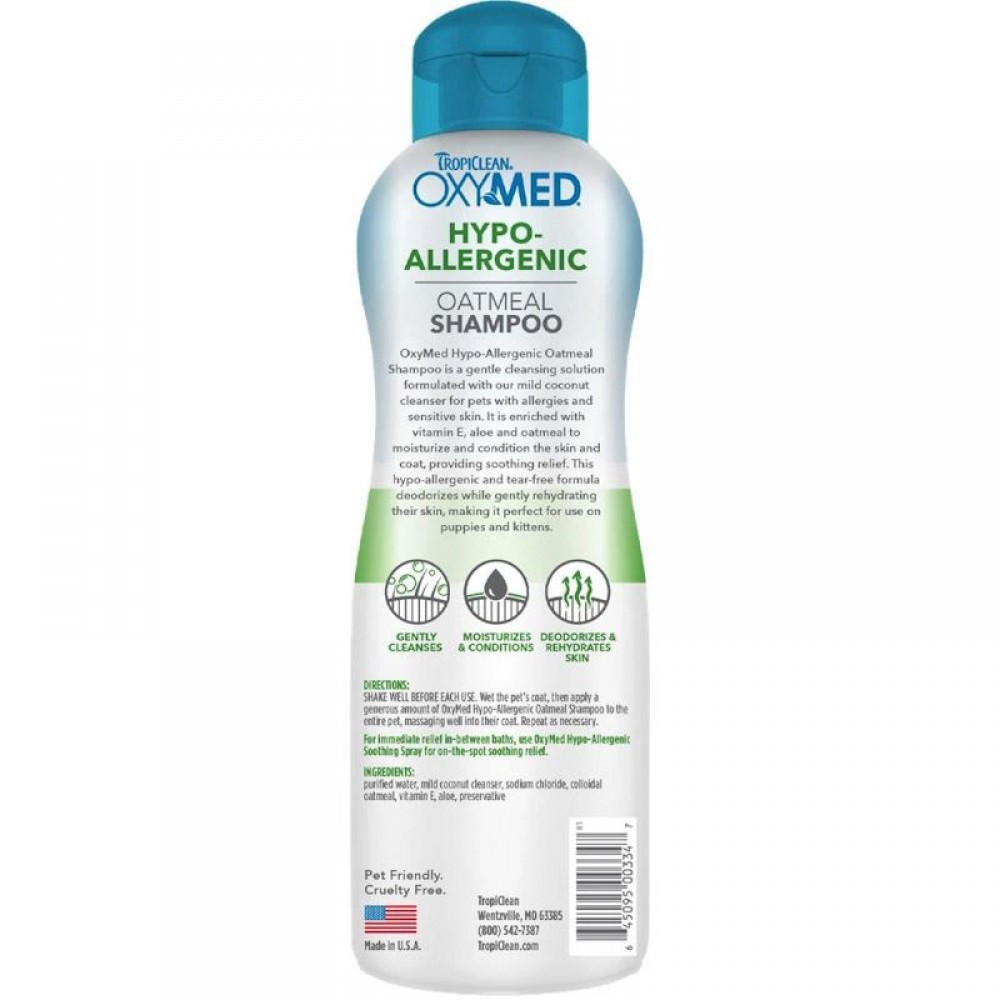 Η σειρά προϊόντων Oxymed από την Tropiclean ήρθε για να προσφέρει στο ζωάκι σας άμεση καταπολέμηση του κνησμού. Καταπραΰνει το ξηρό, ερεθισμένο ή με φλεγμονές δέρμα χαρίζοντας ανακούφιση και υγιές δέρμα - τρίχωμα στο κατοικίδιό σας.