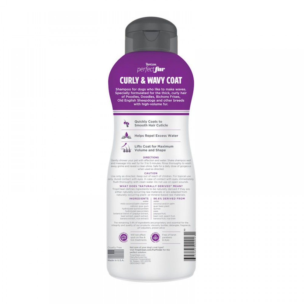 Σαμπουάν ειδικά σχεδιασμένο για σκύλους με πυκνό, σγουρό τρίχωμα. Εμπλουτισμένο με φυσικά συστατικά για να επαναφέρει τη φυσική υγρασία του δέρματος. Καθαρίζει σε βάθος τα κατοικίδια κάνοντας πλούσιο αφρό.Το ελαφρύ τροπικό άρωμα αφήνει αίσθηση φρεσκάδας και αναζωογόνησης στο ζωάκι σας. Ιδανικό για φυλές με πυκνό-σγουρό τρίχωμα όπως: Poodles, Bischon, Frises, Old English Sheepdogs.