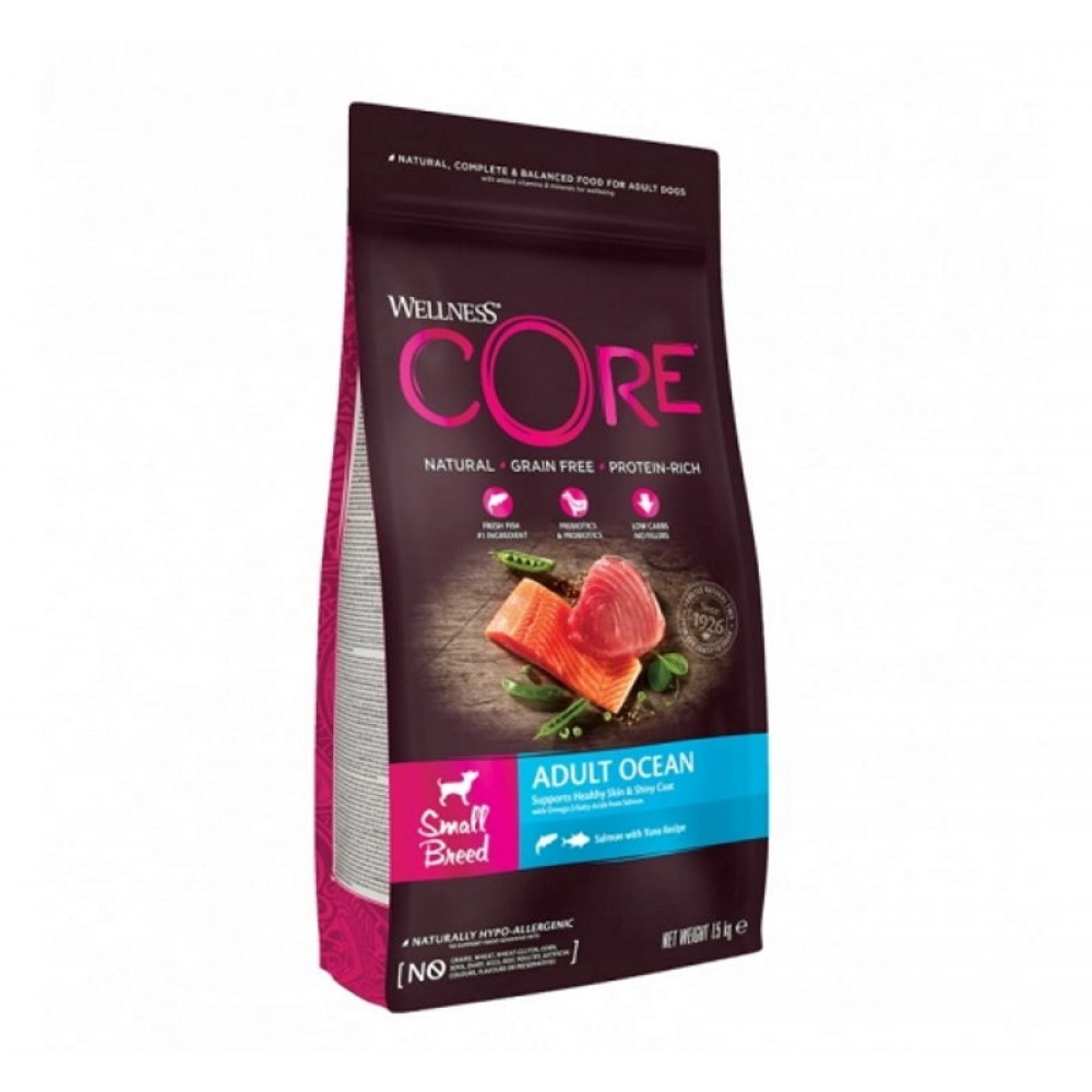 Πλήρης Ολιστική Τροφή με φρέσκο σολομό και τόνο, χωρίς σιτηρά κατάλληλη για μικρόσωμα, ενήλικα σκυλάκια. Περιέχει υψηλής ποιότητας ζωικές πρωτεΐνες σε συνδυασμό με ένα μοναδικό μείγμα λαχανικών και βοτάνων ώστε να καλύψει τις ανάγκες του μικρόσωμου φίλου σας. Μικρές, τραγανές κροκέτες που υποστηρίζουν την οδοντική υγιεινή βοηθώντας στη μείωση της πλάκας. Η υψηλή περιεκτικότητα σε Ω –3 & -6 λιπαρά οξέα έχουν ως αποτέλεσμα το υγιές δέρμα και το λαμπερό τρίχωμα του μικρού σας φίλου. Τα εγγυημένα επίπεδα γλυκοζαμίνης και χονδροϊτίνης υποστηρίζουν ισχία και αρθρώσεις. Η ειδικά σχεδιασμένη για τις ανάγκες των μικρόσωμων φυλών συνταγή της με 48% συστατικά πρωτεΐνης εξασφαλίζει την καλή φυσική κατάσταση του σκύλου σας ενώ παράλληλα διατηρεί σωστή μυική μάζα. Περιέχει πρεβιοτικά και προβιοτικά τα οποία βοηθούν στην χώνεψη, στην καλή λειτουργία του εντέρου και ενισχύουν το ανοσοποιητικό σύστημα του κατοικίδιου σας.