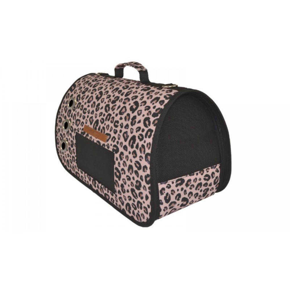 Μοντέρνα τσάντα μεταφοράς ώμου – χειρός ιδανική για πολύωρα ταξίδια ή μεταφορά σε αεροπλάνο*, κατάλληλη για μικρόσωμα σκυλάκια, γάτες και τρωκτικά, σε σχέδιο "λεοπάρ" από αδιάβροχο ανθεκτικό ύφασμα. Ο ιμάντας ώμου παρέχει εύκολη εφαρμογή στον ώμο σας για να μεταφέρετε άνετα και με ασφάλεια τον μικρό σας φίλο, καθώς σας αισθάνεται δίπλα του. Εξαιρετικά ανθεκτική, με ειδικούς αεραγωγούς και στις τέσσερις πλευρές (όπως ορίζουν πλέον οι αεροπορικές εταιρείες για τη μεταφορά ζώων εντός καμπίνας του αεροσκάφους*) και έξτρα τρύπες (μπουντούζια), για άριστο εξαερισμό και μικρό παραθυράκι, ώστε να απολαμβάνει την βόλτα του παρατηρώντας. Αποτελεί ιδανικό αξεσουάρ για εσάς όταν θέλετε να έχετε τα χέρια σας ελεύθερα, ενώ το σχήμα της τσάντας εμποδίζει την οποιαδήποτε "απόδρασή" και κρατάει ασφαλές το ζωάκι σας.