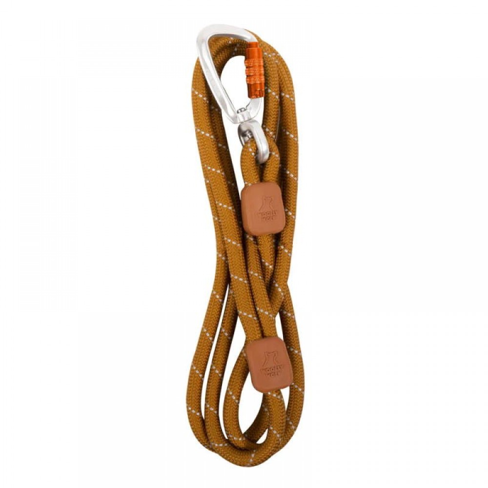Ο οδηγός περιπάτου Honey Ginger Rope Leash της Woolly Wolf κατασκευάζεται σύμφωνα με τη φιλοσοφία των σχοινιών αναρρίχησης. Με εξωτερική ύφανση από 100% ανακυκλωμένο πολυεστέρα (RPET) και πυρήνα από ανθεκτικό Nylon, ο οδηγός αυτός παρουσιάζει εξαιρετική αντοχή και μια ελαφριά ελαστικότητα, που σας βοηθά να ελέγξετε τη συμπεριφορά του μικρού μας φίλου κατά τις εξορμήσεις σας, αποτρέποντας πιθανούς τραυματισμούς και ατυχήματα. Με λευκές ραφές σε όλο του το μήκος που λειτουργούν ως ανακλαστήρες φωτός και ελαφριά δομή, ο οδηγός προσφέρει άνεση στο κράτημα, ενώ το καραμπίνερ από αλουμίνιο με μηχανισμό περιστρεφόμενης κλειδαριάς (twist-lock) που διαθέτει, δένει με σιγουριά προσφέροντας ακόμα περισσότερη ασφάλεια.